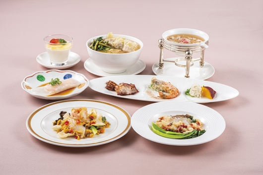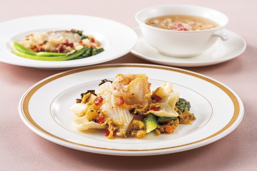 彩り豊かな前菜にはじまり、海老の米粉クレープ蒸しや蟹肉入りふかひれスープなど、海鮮の旨みを引き立てた料理をご用意いたしました。