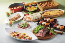 ライブサービスの国産牛ローストビーフやサーモンのヴァプール、寿司など、豪華なメニューをご用意!